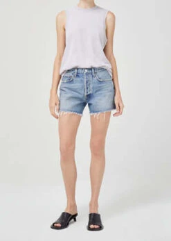 Mode is 5’10” and is wearing a size 27, Closure: Button Fly,Rise: 11 1/4″, Inseam: 4 1/2″, Leg Opening: 24 1/2″