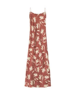 The Chloe Dress in Terracotta Daisy Print by Anine Bing is a bias cut midi length, slip dress featuring a minimalist silhouette with thin straps and low back.