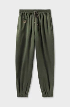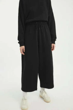 Jogger in organic cotton classic fit, Large belt, High rise, cotton logo tape amovible at the bottoms to tied around the ankles.