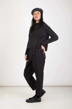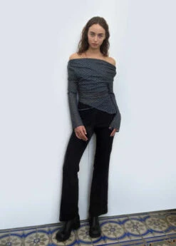 – Banded collar with ruffle detail