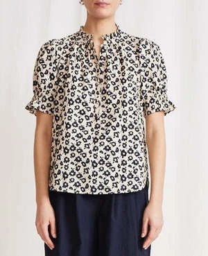 A staple silhouette top from Apiece Apart in cream floral print.