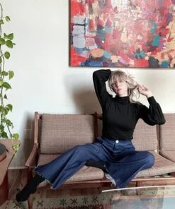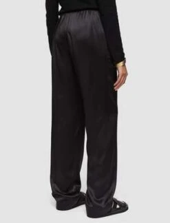 Flowing viscose pant from Baserange with a satin finish and wide leg. Elastic waistband and side pockets make these feel very easy. Belt loop in the back for styling opportunities with the matching Cravat Top.