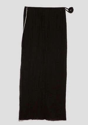 The Shok Wrap Skirt from Baserange is made of crinkle linen and features exposed seam details.