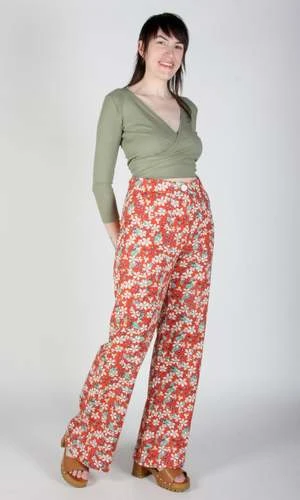 Our first cotton printed pants! Marlin is THE MOST fun pair of pants you may ever have. It has patch pockets on the front and back, a fly front closure, button waist, and it comes in three amazing prints – this vibrant Wild Currant, as well as Faeries and Night Pegasus.
