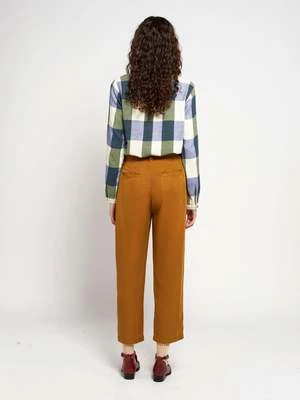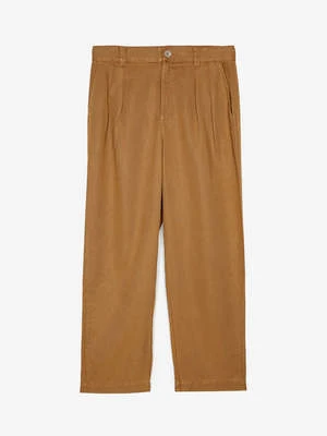100% lyocell brown trousers. Designed with regular crotch, front zip fastening, side pocket, double pleat, belt loop, ankle length and mid-rise. It has a relaxed fit.