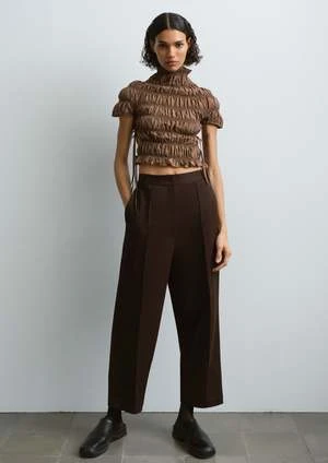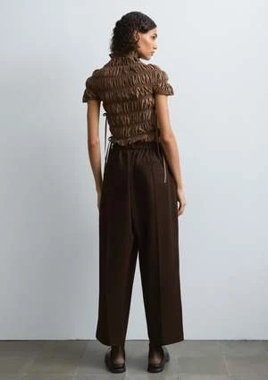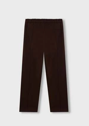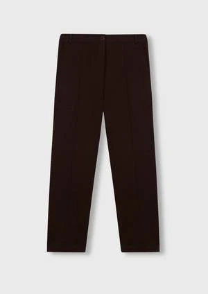 A perfect straight leg trouser made from a soft cotton fabric. Features an elastic waist back, high rise, and front and back seam detailing. Finished with side pockets, back welt pocket and zip fastening with button closure.