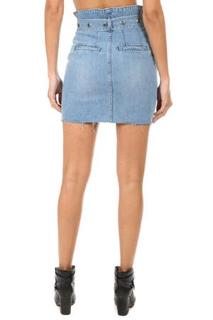 A paperbag waist tied with a pronounced grommet belt takes you right back to the 90’s, complete with full length zipper closure and a frayed hem. Dress it up for the night out or down for a quick burger at the Max.