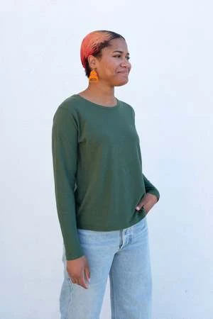 A long sleeve version of one of Jungmaven’s core styles, the Lorel Tee. Designed with a wide neck and roomy shoulder, and fashioned with a super soft, slightly textured hemp blend.
