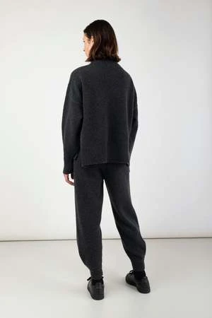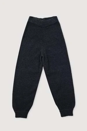 Mid-weight knit pant made from soft boucle yarn. The pant features a wide rib waistband and tuck detail at bottom of the leg.