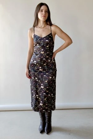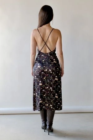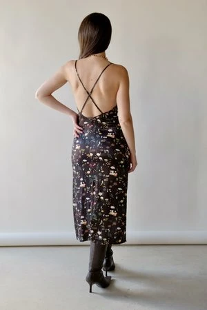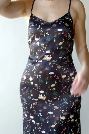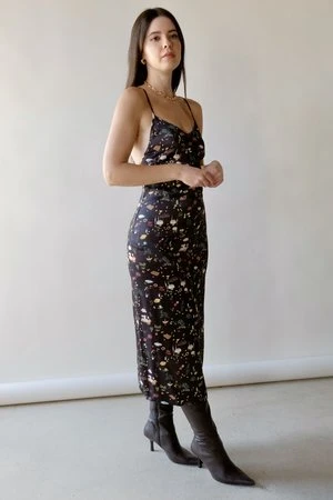 Midi dress with thin and adjustable shoulder straps