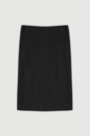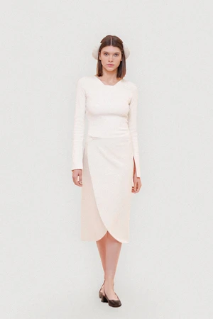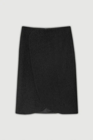 This ‘Petale’ wrap skirt is cut from soft wool blended with cotton. It has a concealed snap fastener through front.