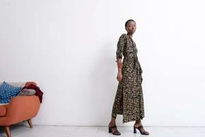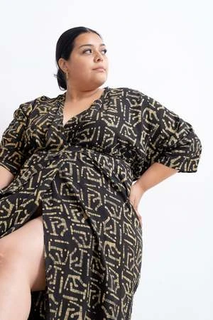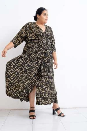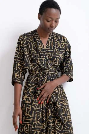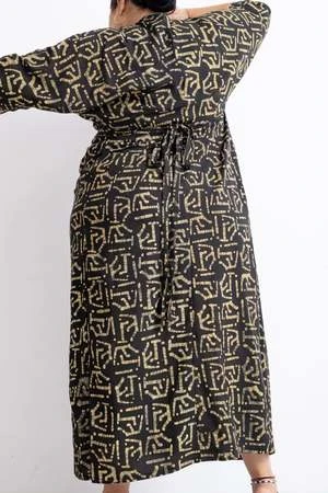 The Letsa is a long narrow wrap dress with batwing sleeves and a deep V neckline. This piece has soft pleats and a small cascade detail at the front waist. Ties wrap around the waist and the skirt opens at the side. Weve updated the Letsa with side slits for even more drama and ease of wearing, and a slightly wider waist tie. Hand dyed.