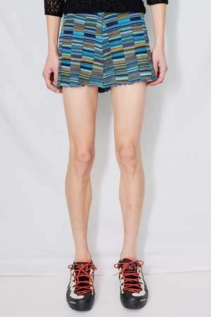 Blue Multi Rehearsal Skirt from Permanent Vacation. Low-rise miniskirt in our signature Project 22 jersey, which utilises multi-coloured organic cotton and has been specially knitted for PV in Osaka, Japan.
