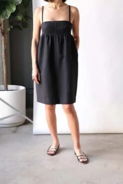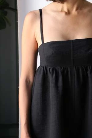 RC’s version of the little black dress. For fans of their classic Fresco Dress in signature Italian Foam Jacquard, the Maniette Dress has the same cocoon silhouette that stands off the body, with delicate straps and an empire waist that exposes a little more back and dcolletage.