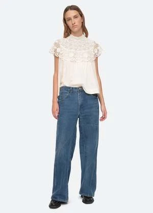 The Serita top features a delicate crochet lace cape.
