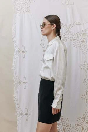 Silk Laundry shirt crafted in 100% silk detailed with a button-down front and utility pockets. Designed to echo an original menswear style for a relaxed fit.