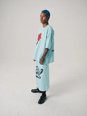 Unisex Skirt with Drawstring and Side Pockets. Digital Pattern Print with Silk Screen Overlay Print and ‘NO’ woven label stitched in front.