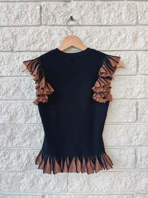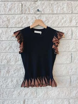The Leila Top features a body-skimming bodice crafted from our ultra-fine ribbed knit, and textural sleeves made from layered ruffles of pleated poplin, creating a dramatic effect. This sculptural silhouette pairs perfectly with denim or midi / maxi skirt!
