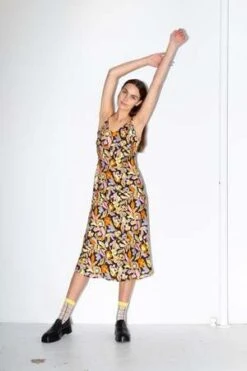 The Desire Slip is cut on bias with round neckline and adjustable thin straps. Easy scoop at back neckline. Dress skims the body and has an easy fit. Skirt flares slightly and hits just above the ankle. Crafted from breathable TENCEL Luxe with silky twill finish, in custom artwork print Lucida.