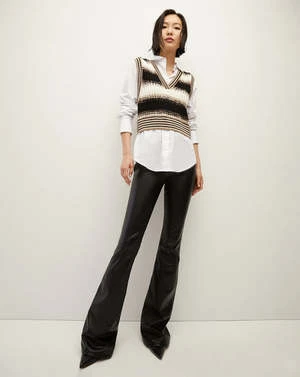 – from the high-rise to the skinny-flare silhouette that gives you legs for days. Front patch pockets and the V-shaped belt loop in the back complete the look. Pair with a tee, a dickey jacket and heels for a new take on the classic VB look.