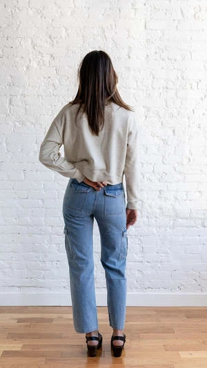 Rock these stylish denim cargo pants this fall! These pants are truly so fun to style and wear because of their unique fit and many pockets! The high-rise and wide leg fit creates such a comfortable everyday look! They are sure to be a staple piece that works for any season and type of weather.